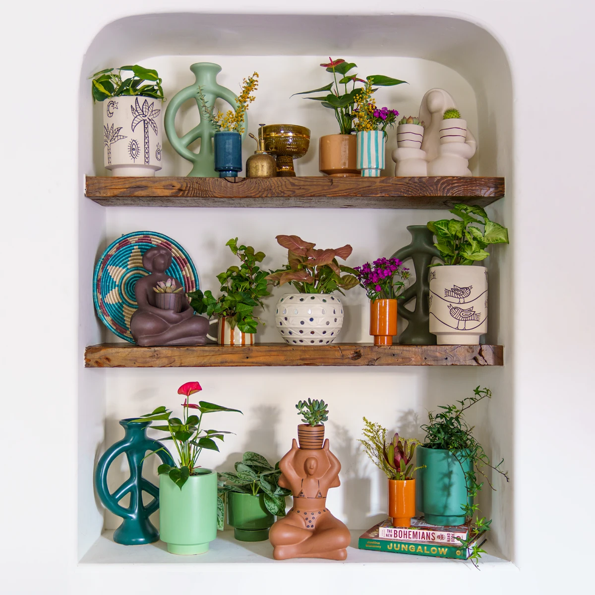 The soothing matte vanilla ceramic allows the contrasting moon, sun, palm tree, eye (and more) illustrations to POP! The artwork is drawn by hand, so each pot is unique – we dig the imperfections and charm that come along with hand-drawn art. The ink color can vary from pot to pot, reading as a warm brown to a charcoal gray depending on the pot & the lighting.
