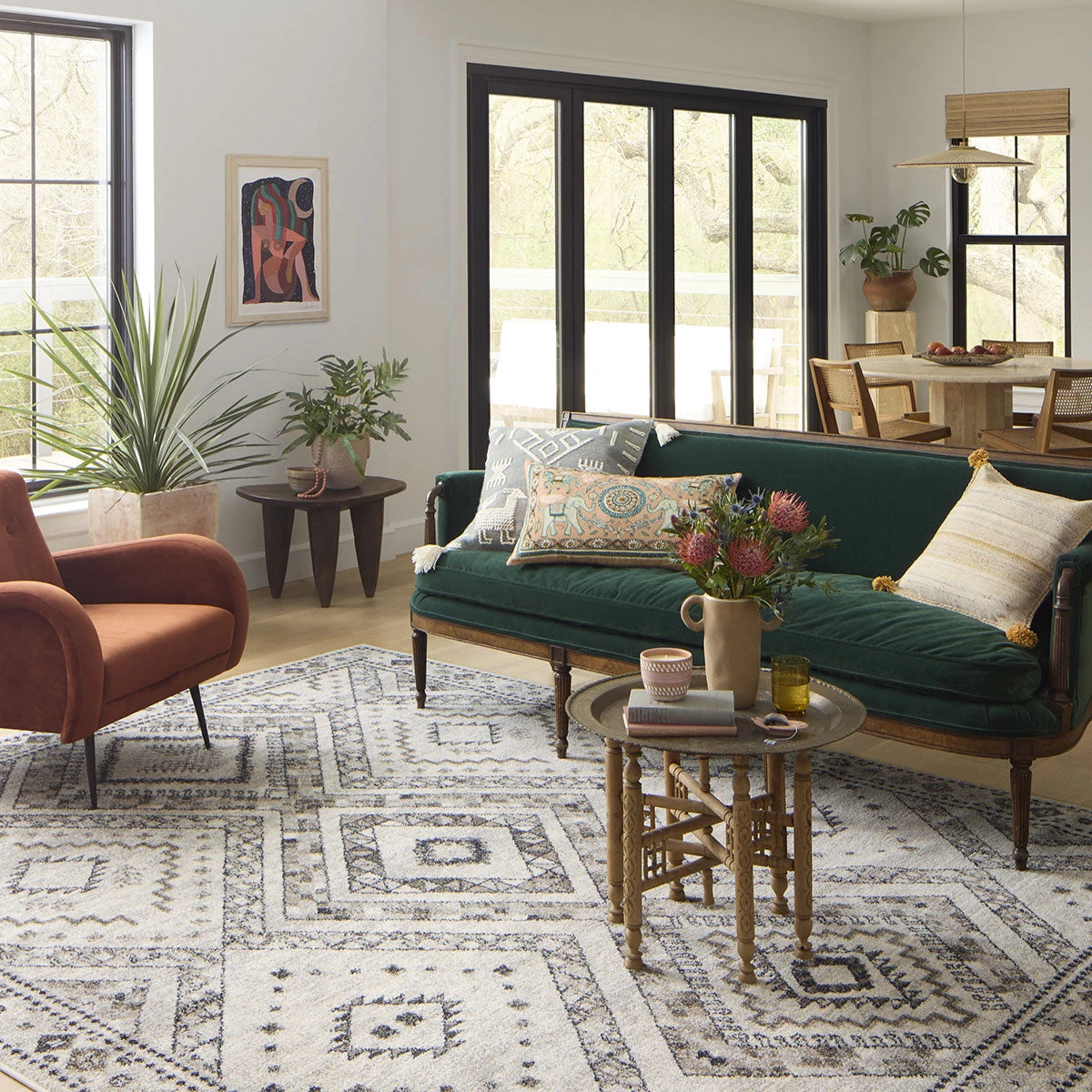 Justina Blakeney takes inspiration from vintage fabrics in the Eila Collection, her latest colorful collaboration with Loloi. The ever-so-faded rugs add instant lived-in energy to any space, while the diamond pattern draws the eye to the center of the room. The Ella Collection also carries the Oeko-Tex® label, ensuring the rug’s materials don’t contain harmful substances.